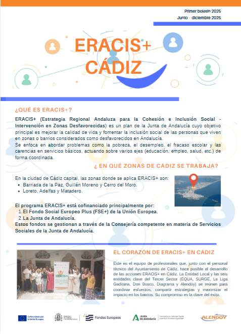 Publicamos el primer boletín con información relevante y noticias de la Estrategia Regional Andaluza para la Cohesión e Inclusión Social 2023-2027 (ERACIS+) que se está desarrollando en la ciudad de Cádiz.